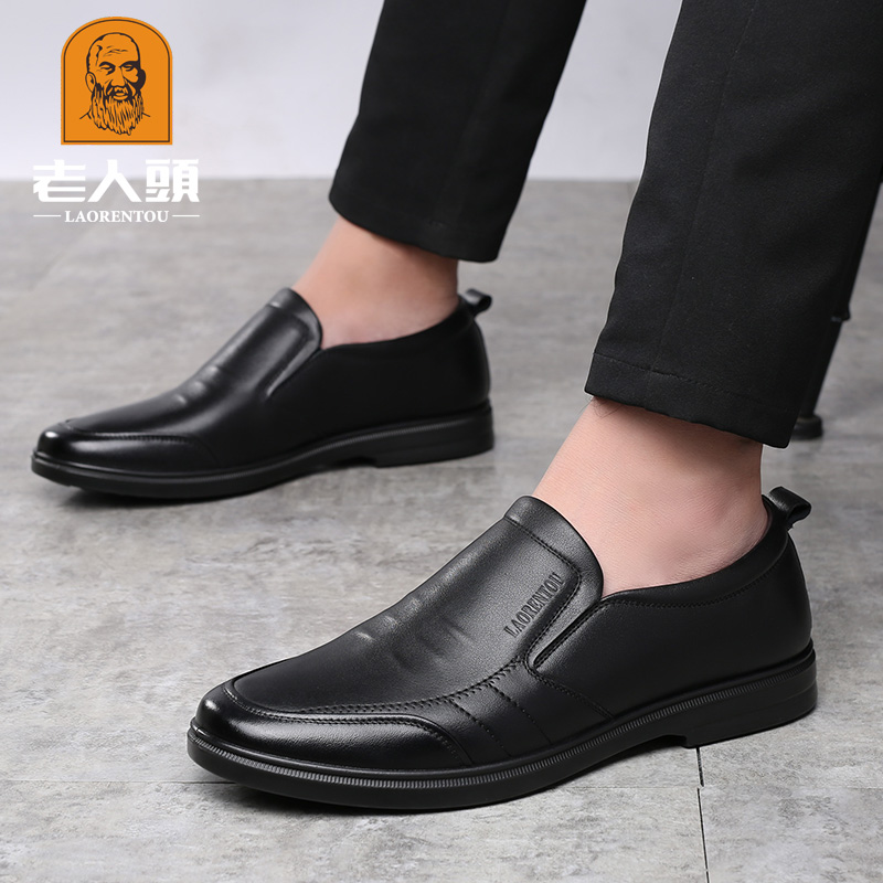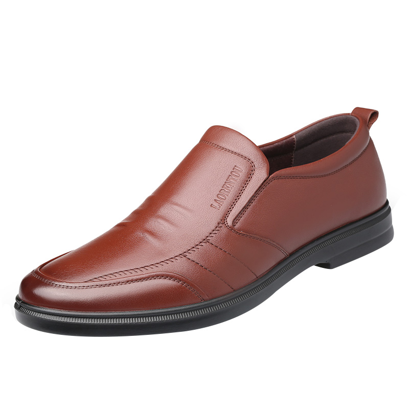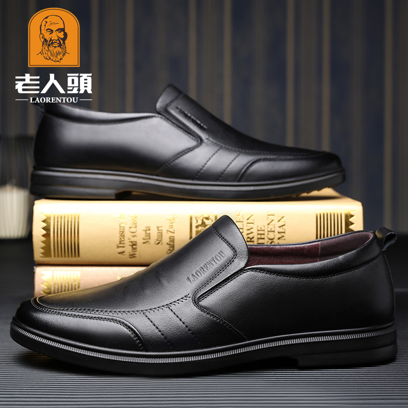 elderly men's spring genuine leather business casual shoes British soft leather soft sole fleece all match youth leather shoes