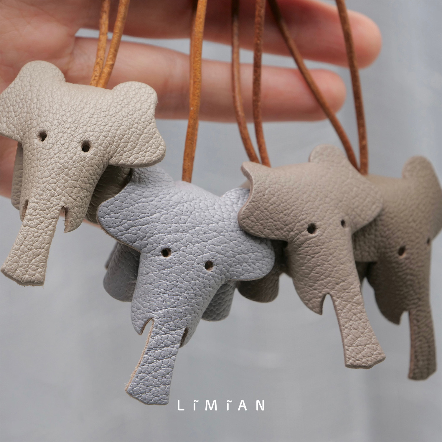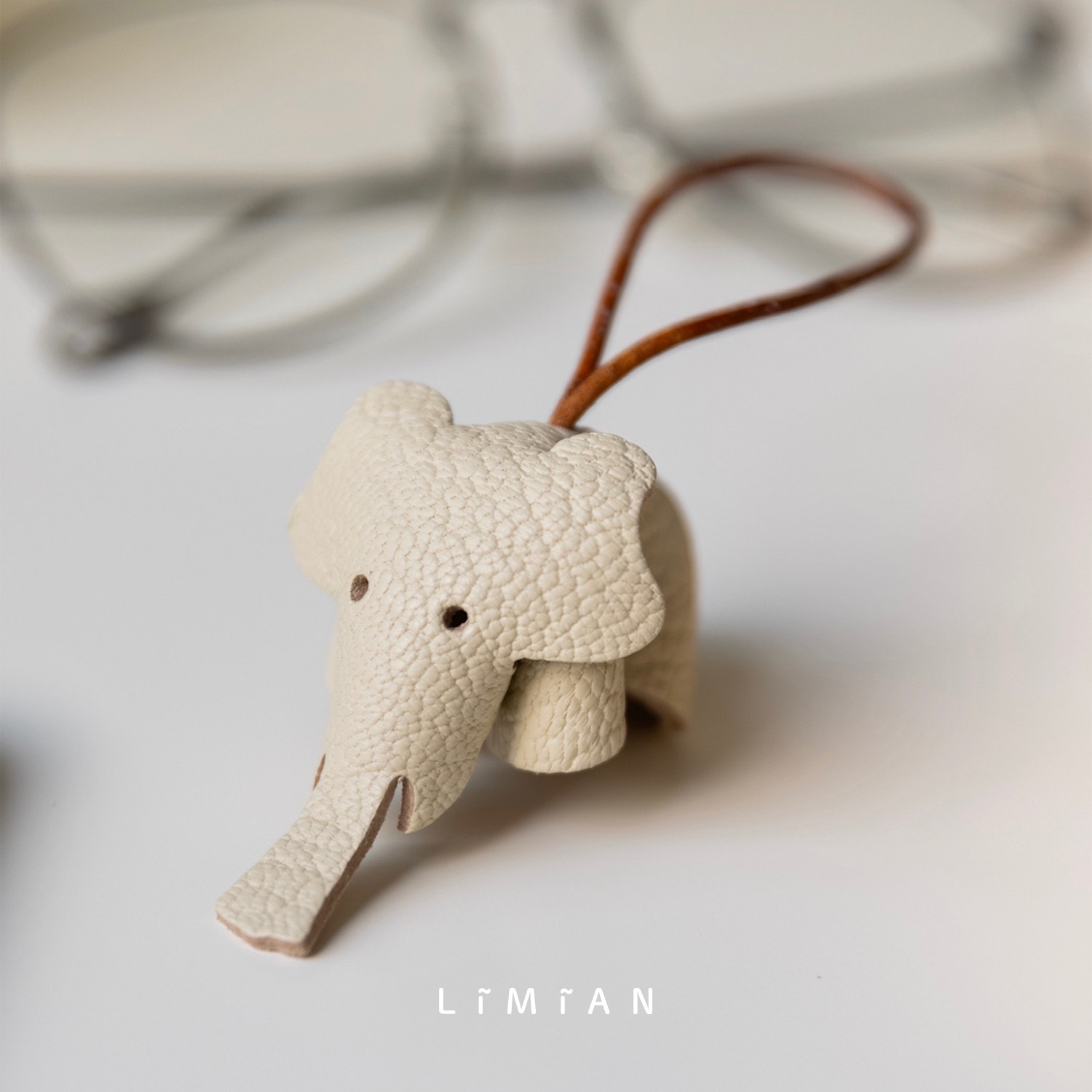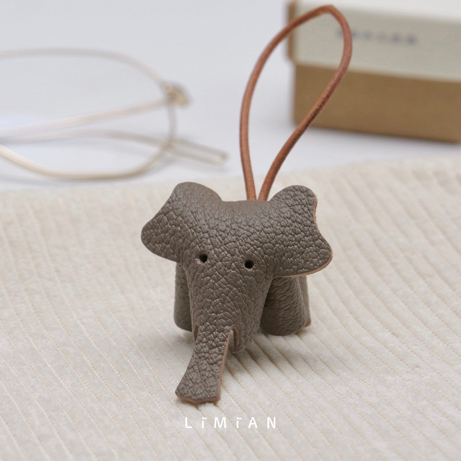 Small Elephant Head Layer Mountain Goat Leather Bag Pendant Key Buckle Car Pendant Cornetto Color Optional Inside LM Hand Customized