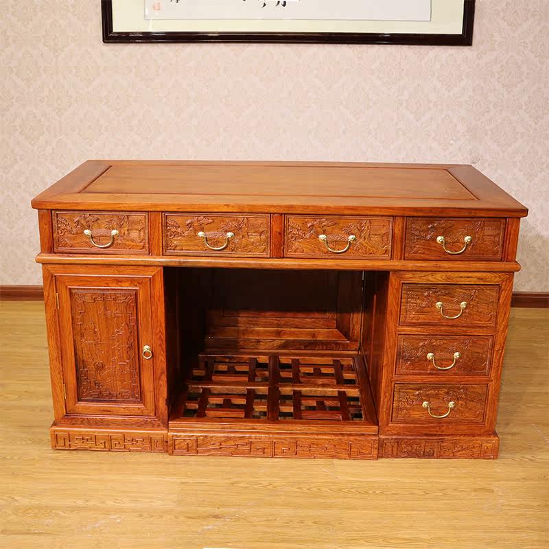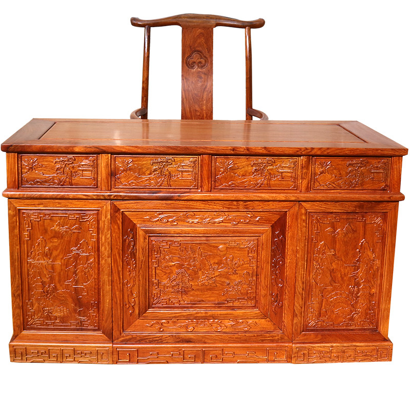 Burmese rosewood mahogany desk writing desk small large fruit rosewood Chinese solid wood carved desk chair combination