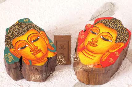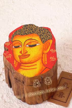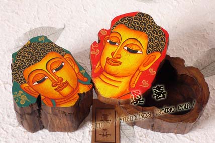 Painted Buddha Head Profiled Solid Wood Thai Teak Craftsmanship Gift Pendulum Decorated Handpainted Buddha Statue of the first decoration case Genuine Delight Containing Box Retro