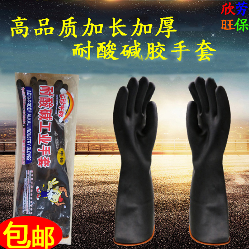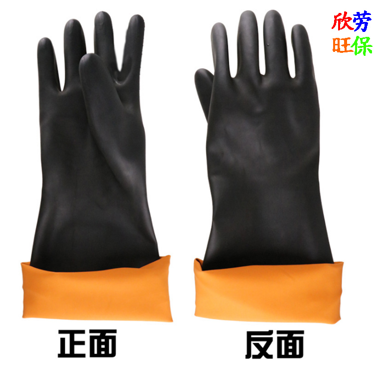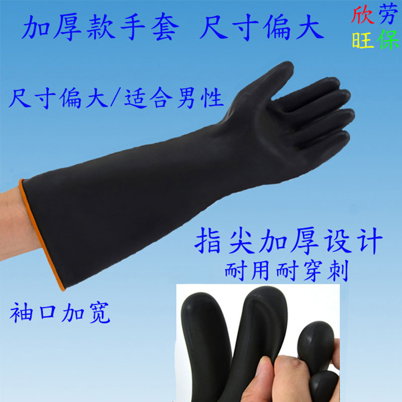 Black rubber corrosion protection acid-resistant pH glove Industrial protective laboratory lengthened thick abrasion resistant and waterproof strain gloves