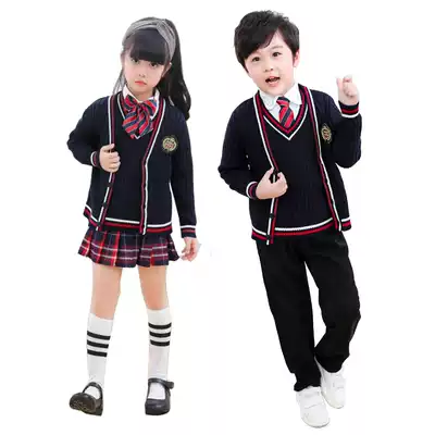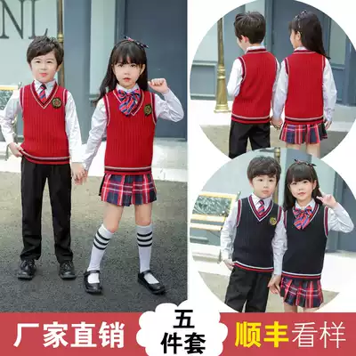 Kindergarten garden clothing spring and autumn suit sweater vest British Academy style children's class uniforms primary school uniforms spring and autumn clothing