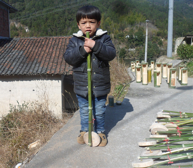 Bamboo stroller toy straight rod stroller trolley single-wheeled stroller Children's game props Bamboo toys
