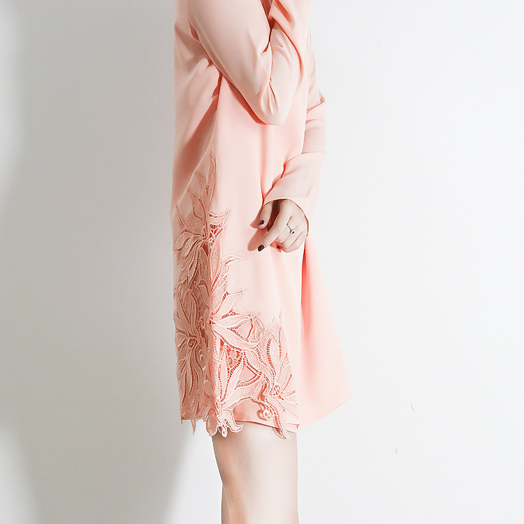 Cattle no need to question high end series soft and beautiful side lace splicing double layer snow spinning long sleeve foreign dress woman