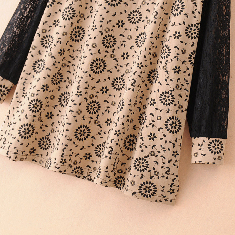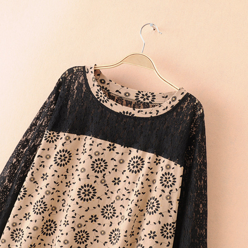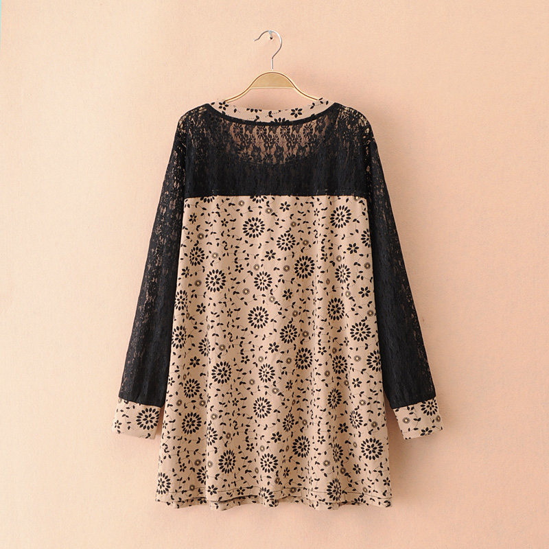 Gugujia custom large size women's clothing early autumn mid-length fat MM200 catties lace splicing loose pullover bottoming shirt