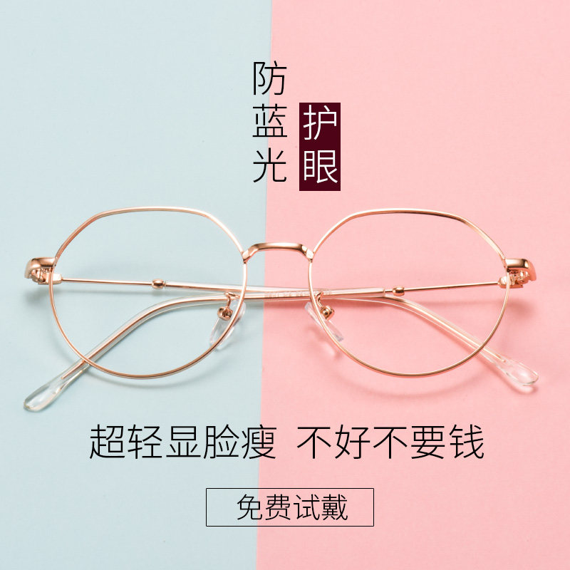 Myopia Glasses Women With Degrees Polygon Retro Spectacle Frame Men's Round Frame Anti-Blue Light Radiation-Resistant Flat Light Goggles