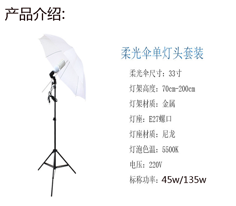 Photo-suit single lamp holder reflecting soft light umbrella lamp holder 45W135W bulb portrait shooting Tonic Light Photography