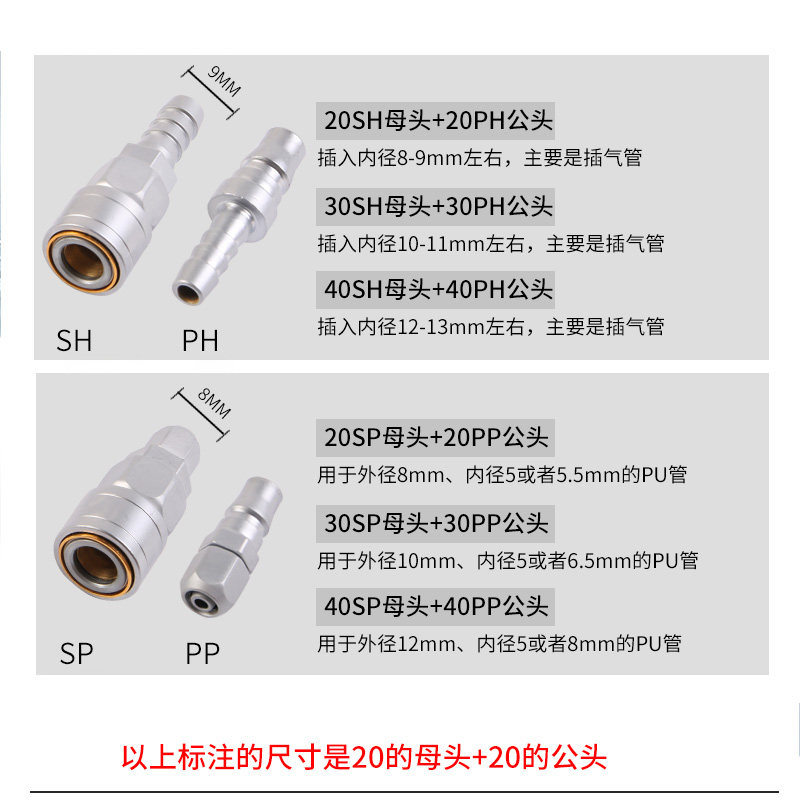 C-type self-locking quick connector pneumatic air compressor air pump hose oxygen PU trachea tool wood air gun male and female quick plug