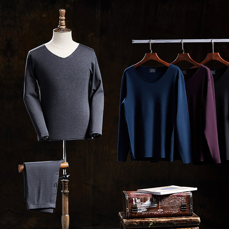 Autumn clothes and autumn pants men's set thin heating and fleece cold-proof and traceless thermal underwear tight German velvet youth cotton sweater