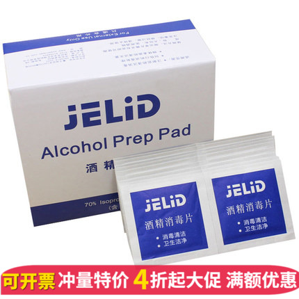 (100 Pieces) JELID Alcohol Tablets Disposable Alcohol Pads Disinfection Wipes Wound Disinfection Cotton Pads