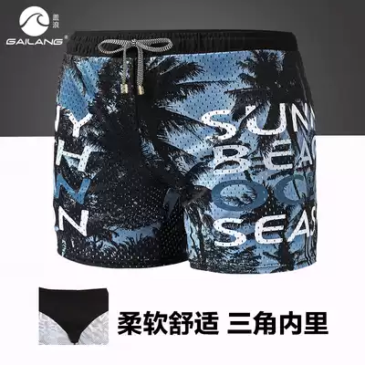 Swimming trunks mesh anti-embarrassment elastic belt lining seaside swimming pool men's boxer printing hot spring vacation outdoor swimsuit