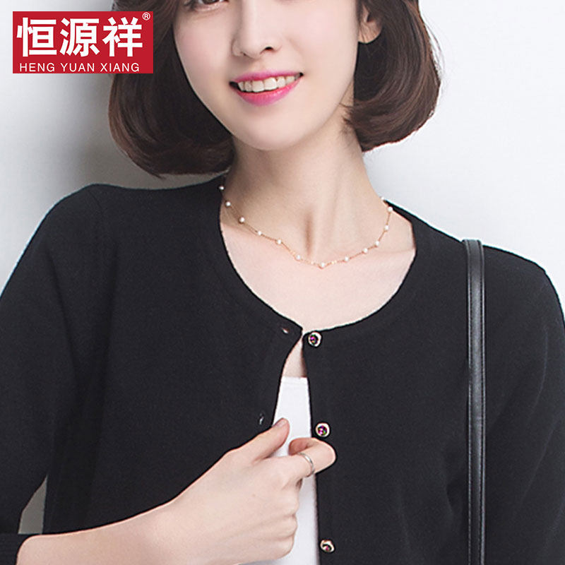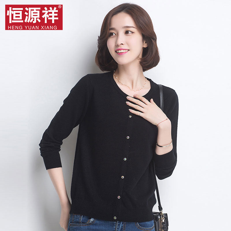 Hengyuanxiang Pure Cardigan Women's Thin Knitted Cardigan 2021 New Short Style Spring and Autumn Black Sweater Jacket