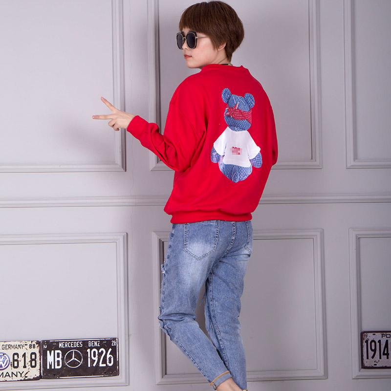 Look tail bear sweater 2023 new women's Korean edition of the tide students loose sleeve long - sleeved tops