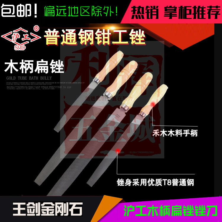 Hugong wooden handle flat file file large plate file steel file fitter file flat file file 6-18 inch thick and medium fine teeth
