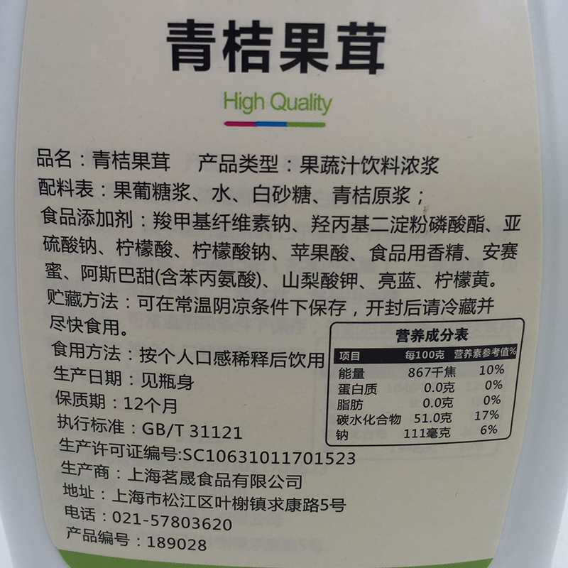 Mingsheng green orange puree drink thick syrup Concentrated green orange juice Green orange puree jam Special puree for milk tea shop