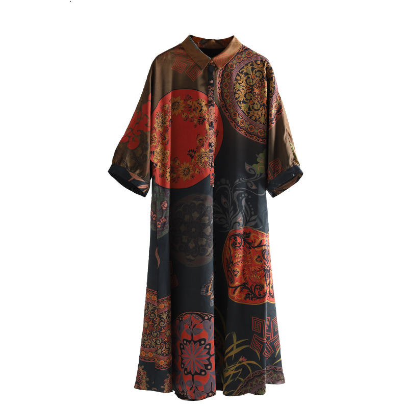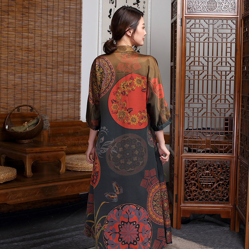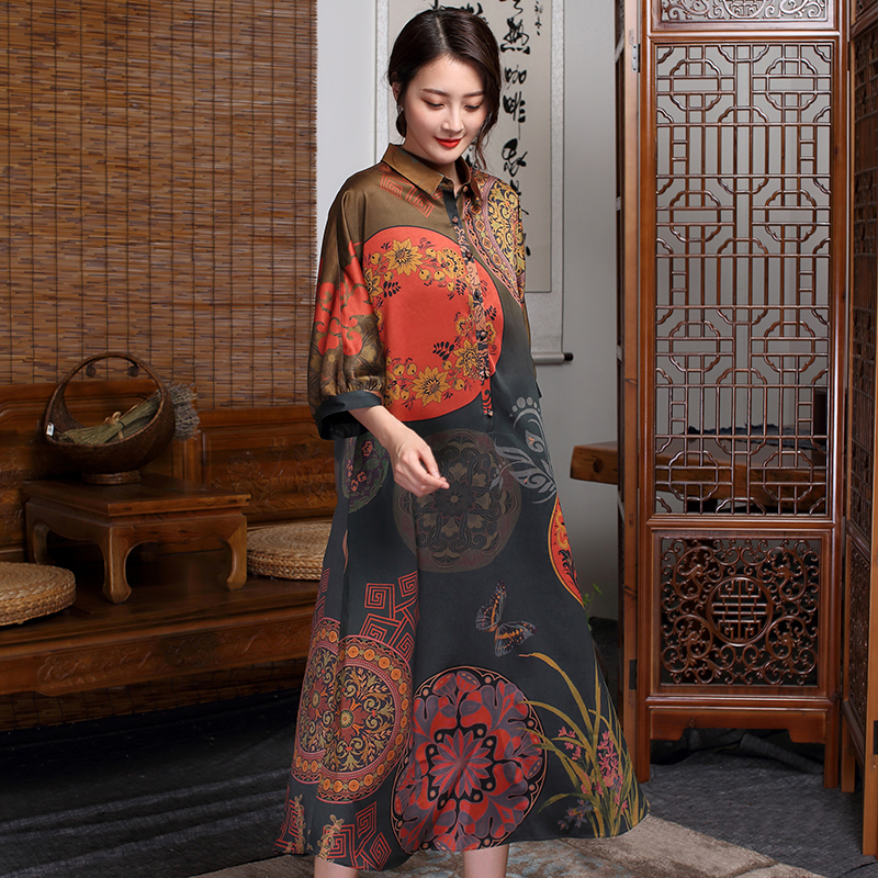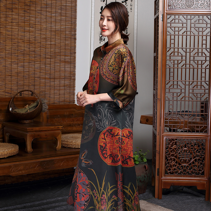 Twilight goes to the cloud to remake a real silk woman long sleeve fragrant cloud yarn mulberry silk long dress retro long gown square collar skirt