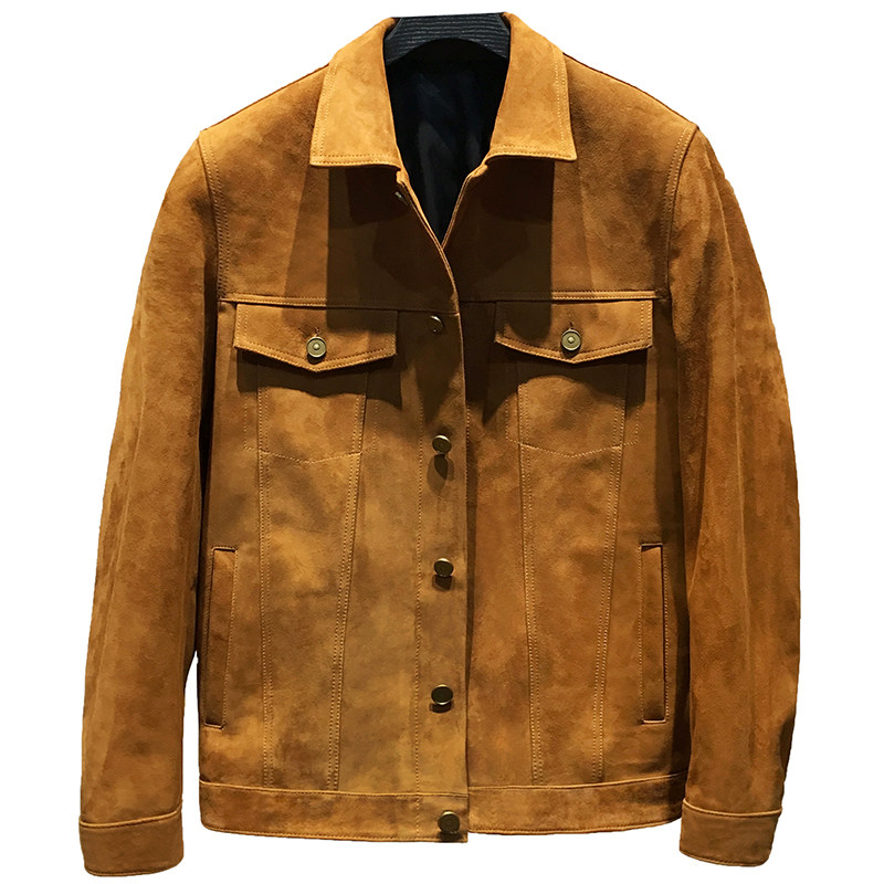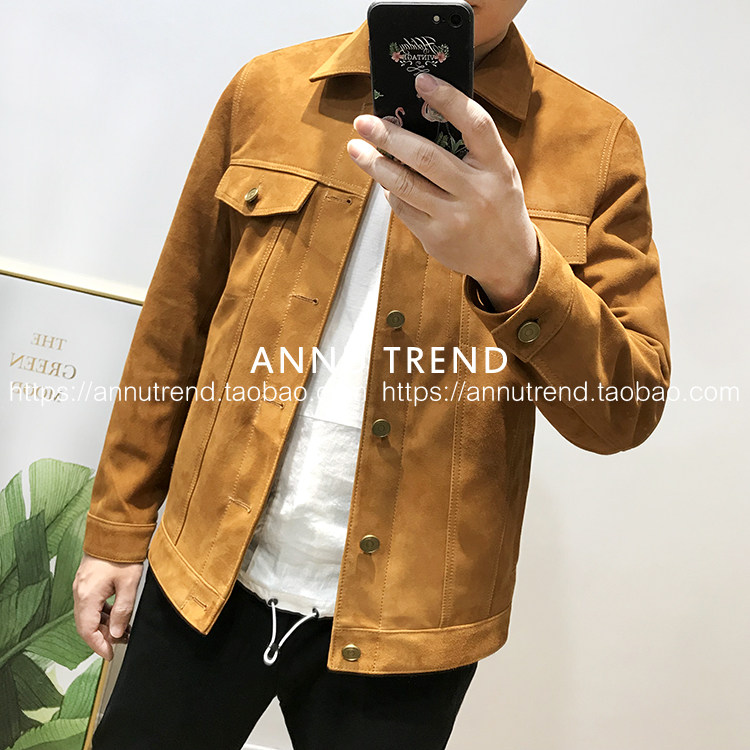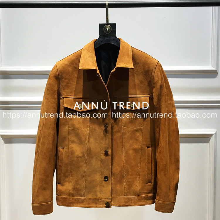 AnnuTrend Imported Anti-Suede Goat Leather SLP Wind Dermis Leather Jacket Jacket Men Short turnover jacket jacket
