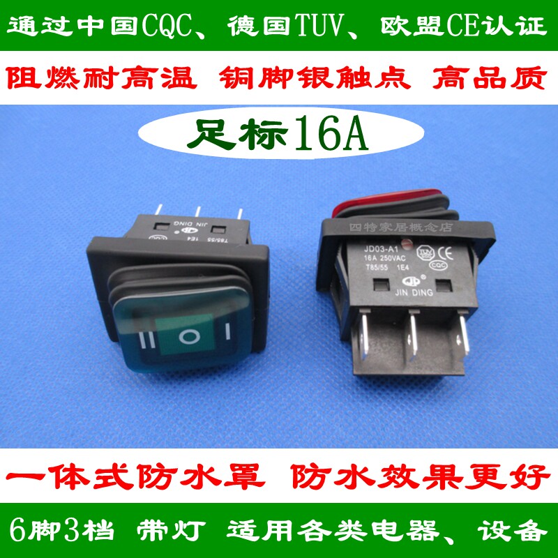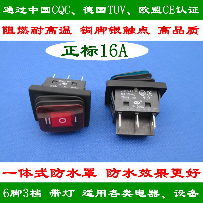 Dust-proof and waterproof rocker switch six-legged three-speed rocker rocker switch double-pole double-throw steering reversing 16A