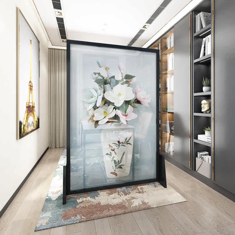 Modern simple Chinese solid wood screen severance living room bedroom hotel tea house customizable flower walnut wood