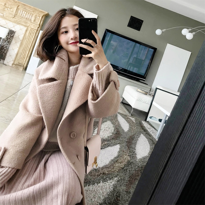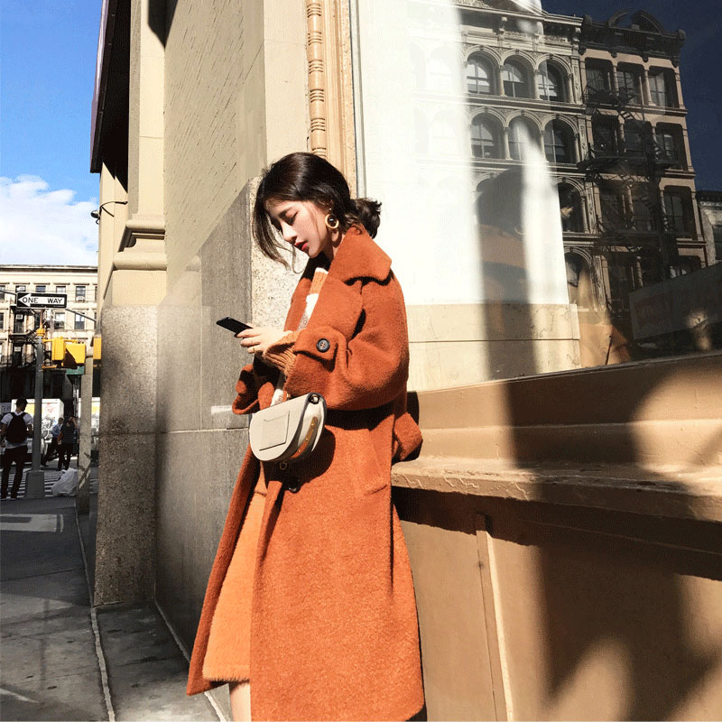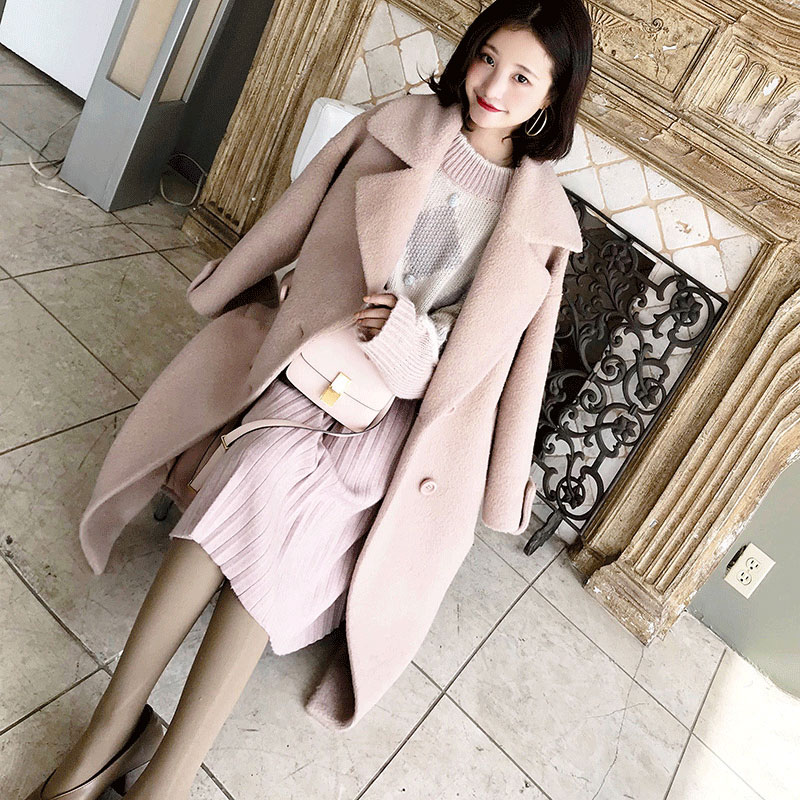 Great Joy Homemade 2019 Autumn Winter New Women's Clothing Loose-wide Wool With Great Dress Woman Pure color long version of the outside
