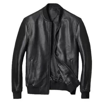 Spring and Autumn New Sheep Leather Leather Leather Men's Leather Jacket Slim Short Baseball Collar Casual Men's Coat Special