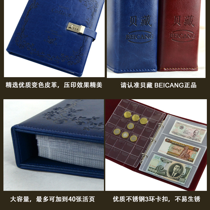 Beizang vintage locked banknote collection book RMB collection coins Banknote empty book Commemorative coin Coin loose-leaf book
