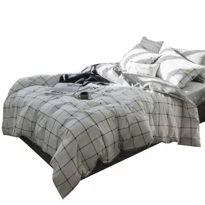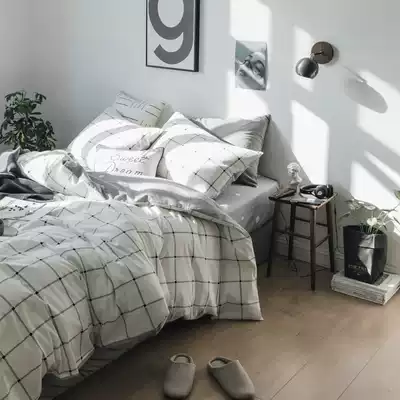 Nordic cotton bed four-piece ins wind simple plaid cotton quilt cover 1 8m double single bed Single bed single bed Single bed Single bed Single bed Single bed Single bed Single bed Single bed Single bed Single bed single bed single bed single bed single bed single bed