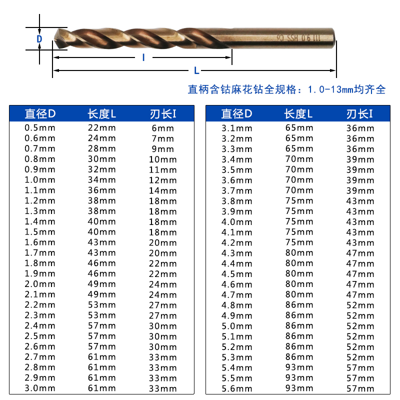 MIL Stainless Steel Twist Drill Straight-shank high-speed steel contains cobalt M35 stainless steel metal reamer 3-4.9mm