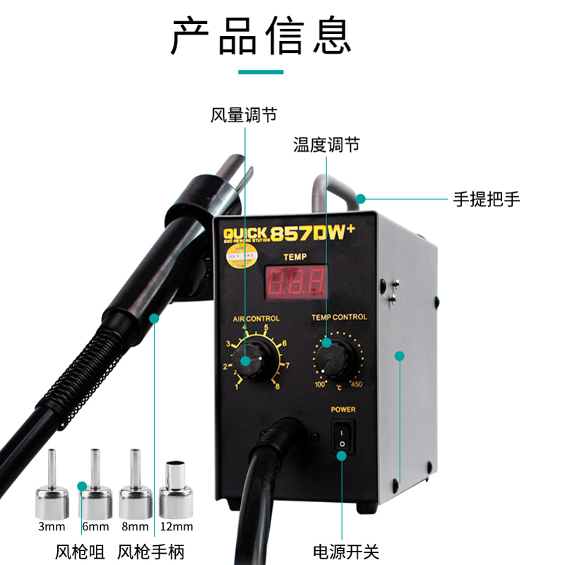 857DW + standard distribution of 4 air gun nozzles 857DW + standard + original A1147 heating core 857DW + standard + 60W857DW + standard + 90W857DW + standard + 120W intelligence