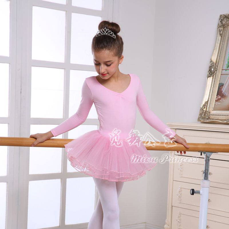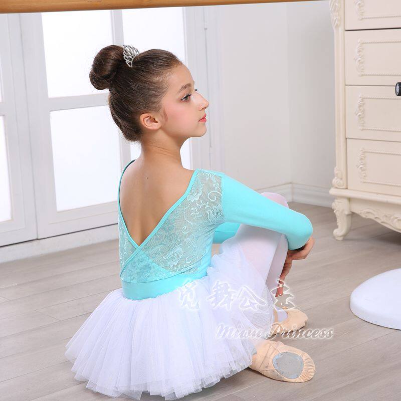 Children dance with large dew back long sleeves lace gymnastics to practice the spring and summer girls' ballet performance dance