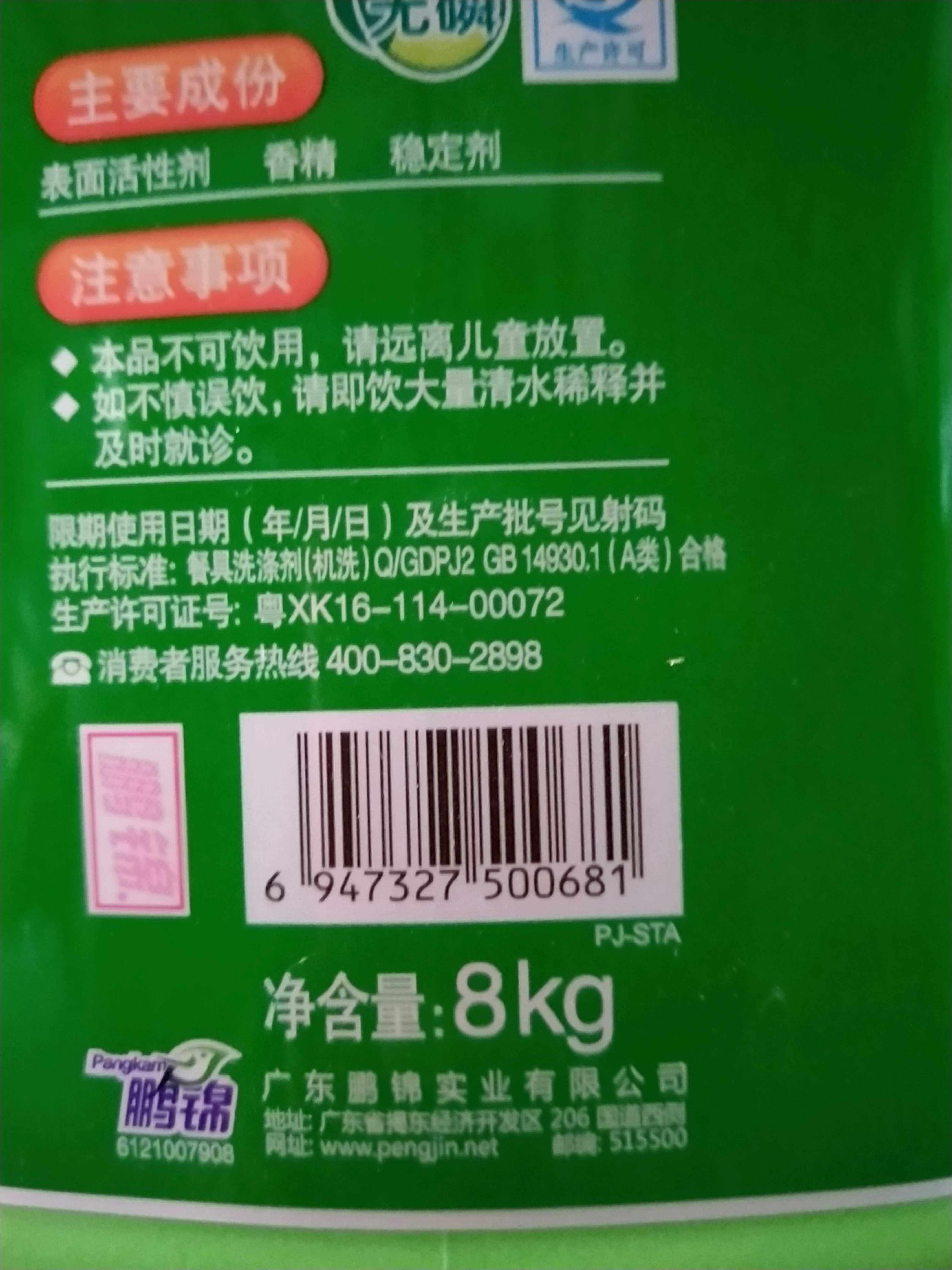 Peng Jin dishwashing detergent for hotels, restaurants, special large bucket of 8KG ginger meal detergent, strong deoiling effect