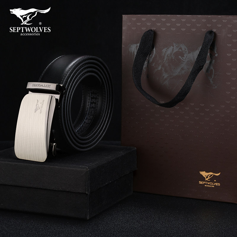 Septwolves belt men's leather belt young Korean version automatic buckle cowhide all-match pants belt men's simple hipster