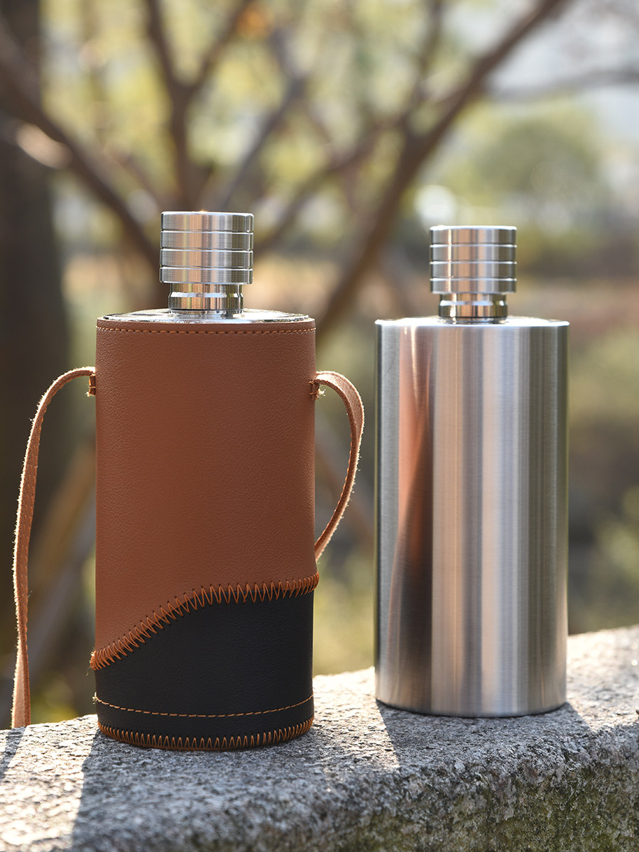 304 stainless steel small jug 1 catties Russian cylindrical white wine bottle outdoor portable empty bottle kettle thickened wine set