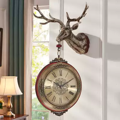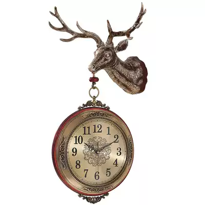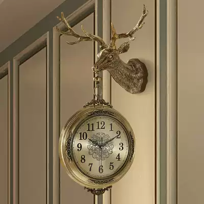 European-style American light luxury creative alloy deer head wall-mounted clock double-sided wall clock Hotel living room model room pendant