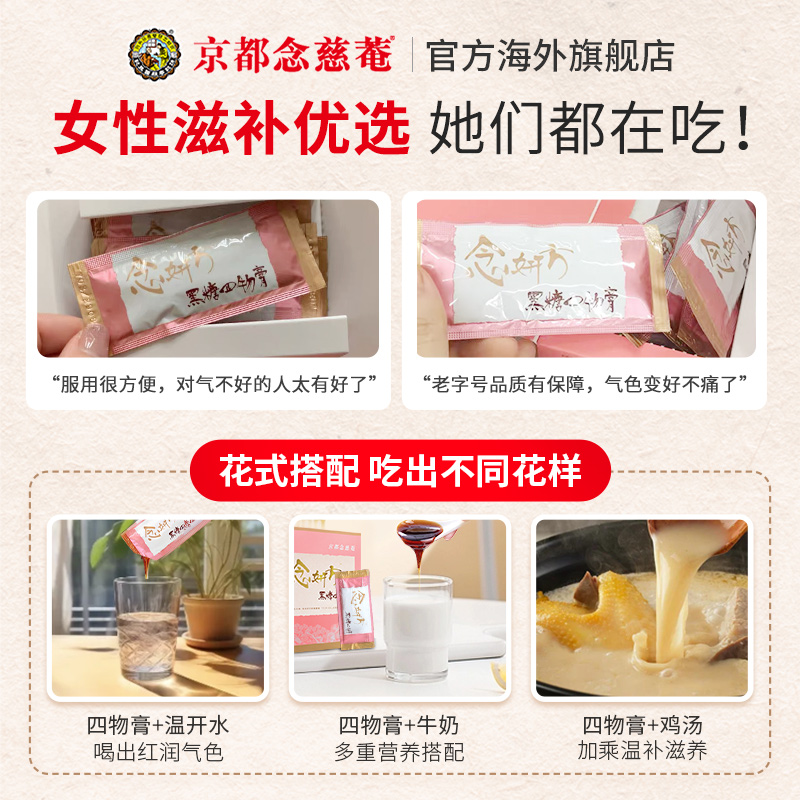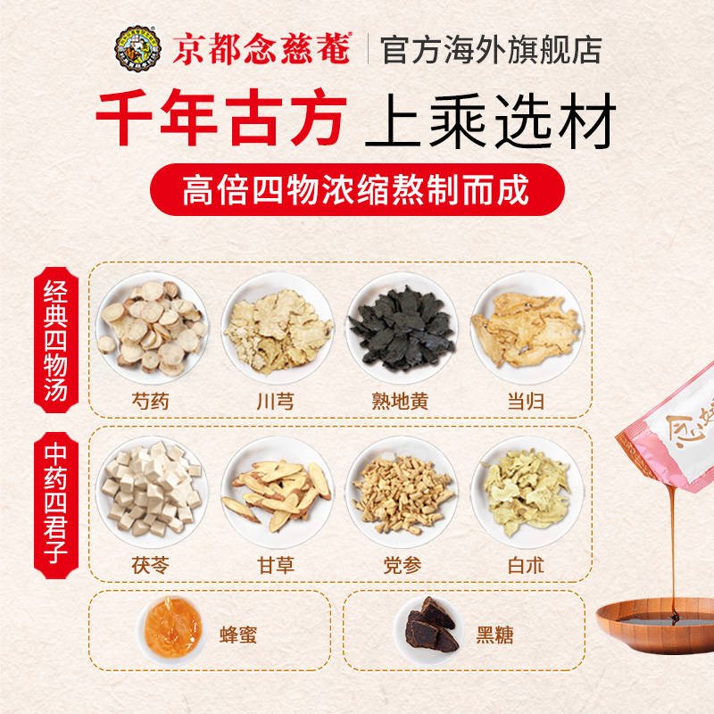 Kyoto Niu Ami Black Sugar Four Things Paste Four Things Soup 3 Box Eight Precious Female Invigorating Conditioning Red Sugar Recuperation Traditional Chinese Medicine-Taobao