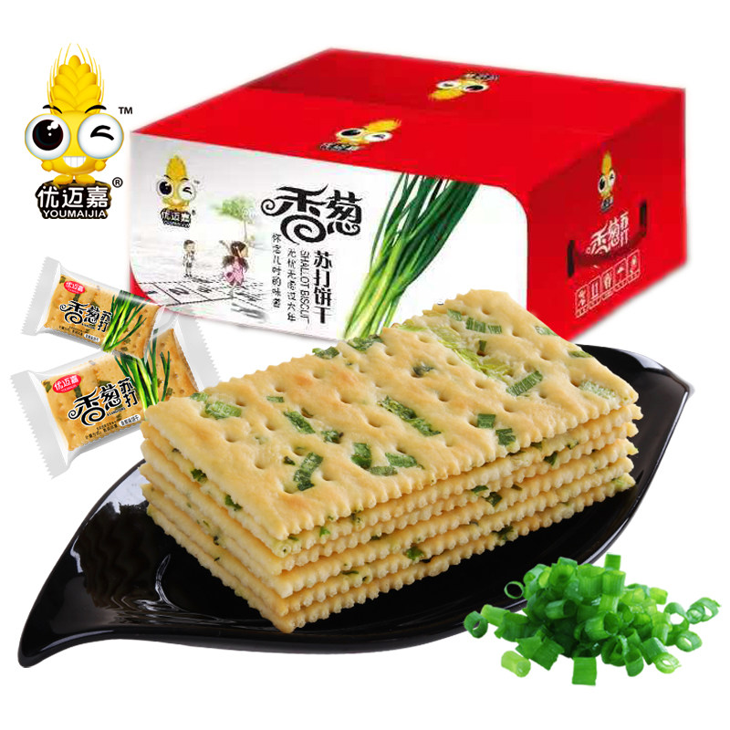 Youmaijia cane sugar-free chive soda biscuits bulk salty soda biscuits meal replacement satiety snacks whole box wholesale