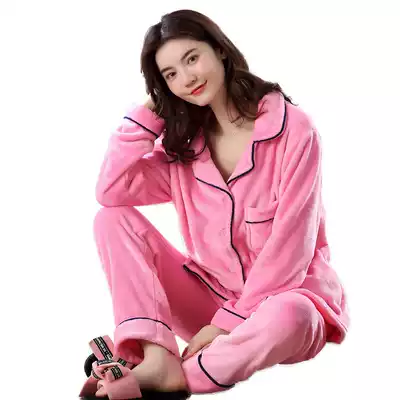 Autumn and winter coral velvet pajamas Women's winter thickened plus velvet home clothes women's winter flannel warm long-sleeved suit