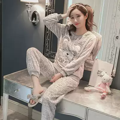Pajamas female autumn and winter coral velvet thickened Korean version of fresh and cute student flannel home clothing women plus velvet suit
