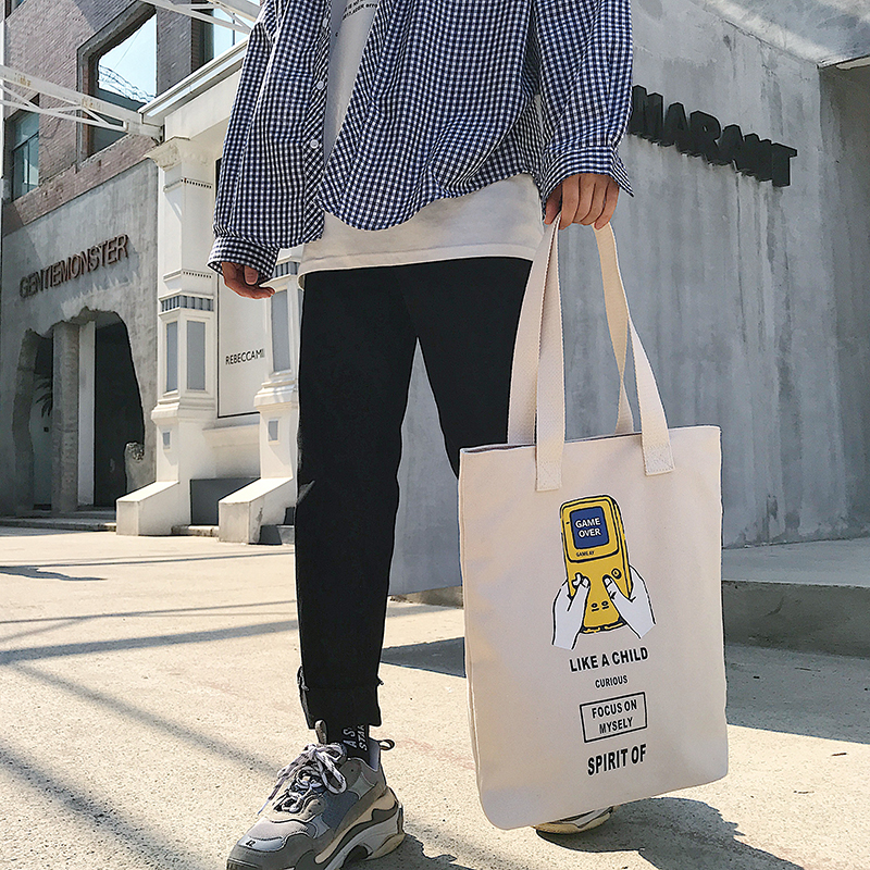 Shoulder bag men's Korean version casual literary art handbag canvas bag tide large capacity Japanese ins student cloth bag bag female