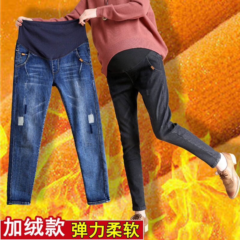 Pregnant Woman Jeans Winter Clothing 2018 New Pregnant Woman Pants Loose large size Yard Pants Winter Add down thickened long pants