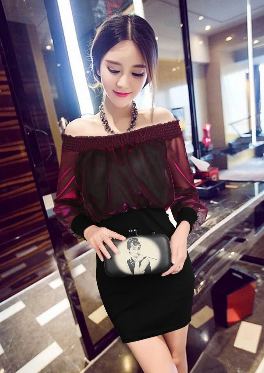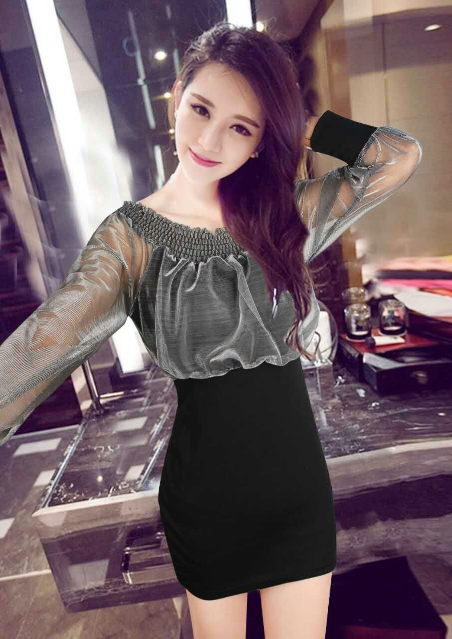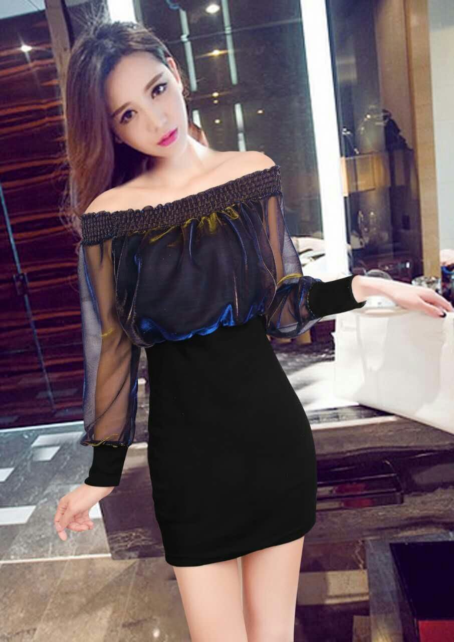 Big size Korean version sexy pseudo-Niang dress cross-dressing nightclub cross-dressing a full set of character collar women's clothes big guy