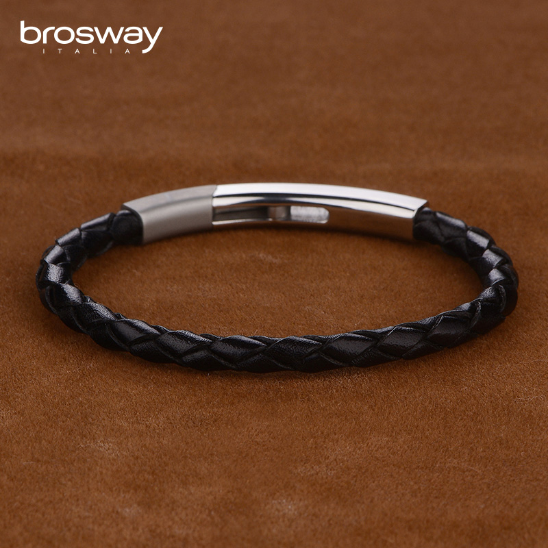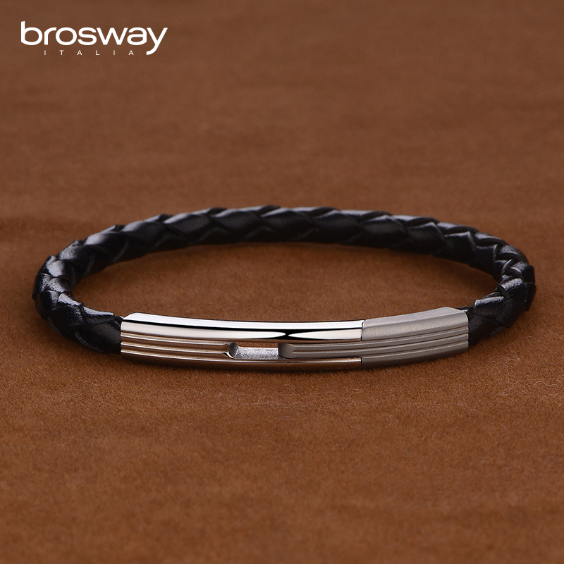 brosway Europe and the United States fashion light luxury fashion decoration personality men's calfskin braided titanium steel bracelet bracelet send boyfriend