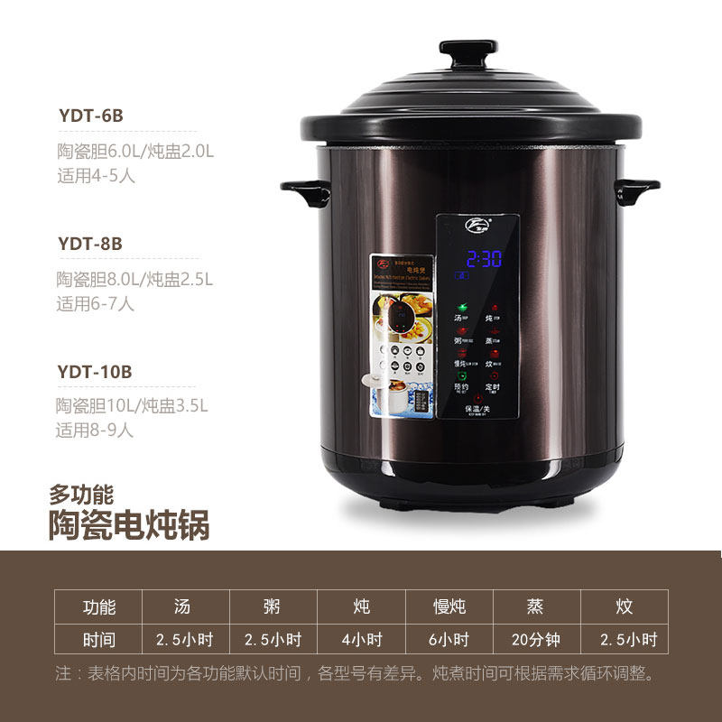 Feilu YDT-8B ceramic electric stew pot water-separated stew large capacity commercial cooking porridge pot electric soup pot electric stew cup 6810L