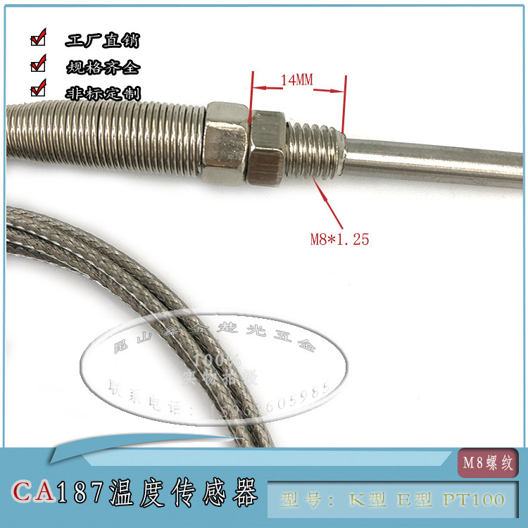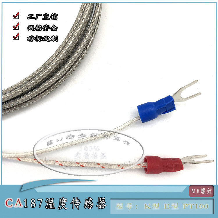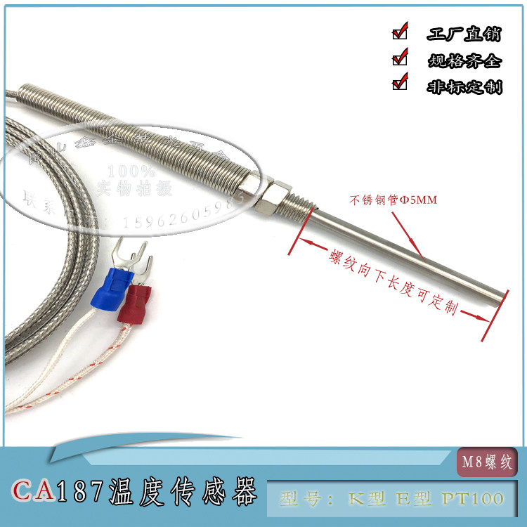187 Armored thermocouple type K PT100 thermal resistance temperature sensing line Catch temperature line Monitor screw thermocouple
