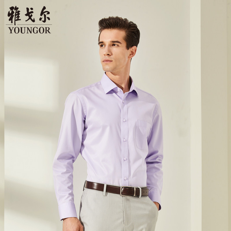 Youngor long-sleeved shirt spring men's official senior business leisure Xinjiang pure cotton DP free ironing white shirt A21A