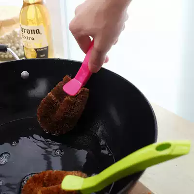 3 sets of non-stick oil Brown brush wash pot brush kitchen degreasing brush Brown pot brush clean helper