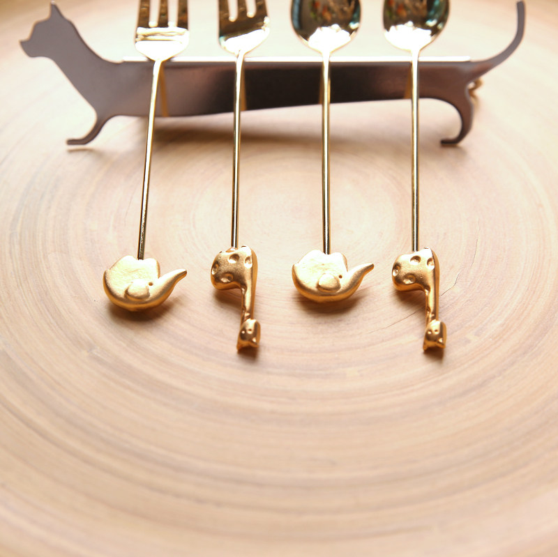 Made in Japan zakka stainless steel gold plated bear moon baby elephant animal coffee spoon Mixing spoon Dessert spoon