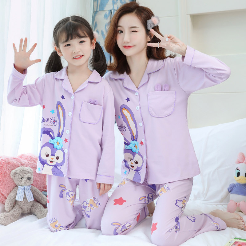 Parent-child pajamas girls long-sleeved cotton spring and autumn cute pink mother and daughter home clothes girls suit