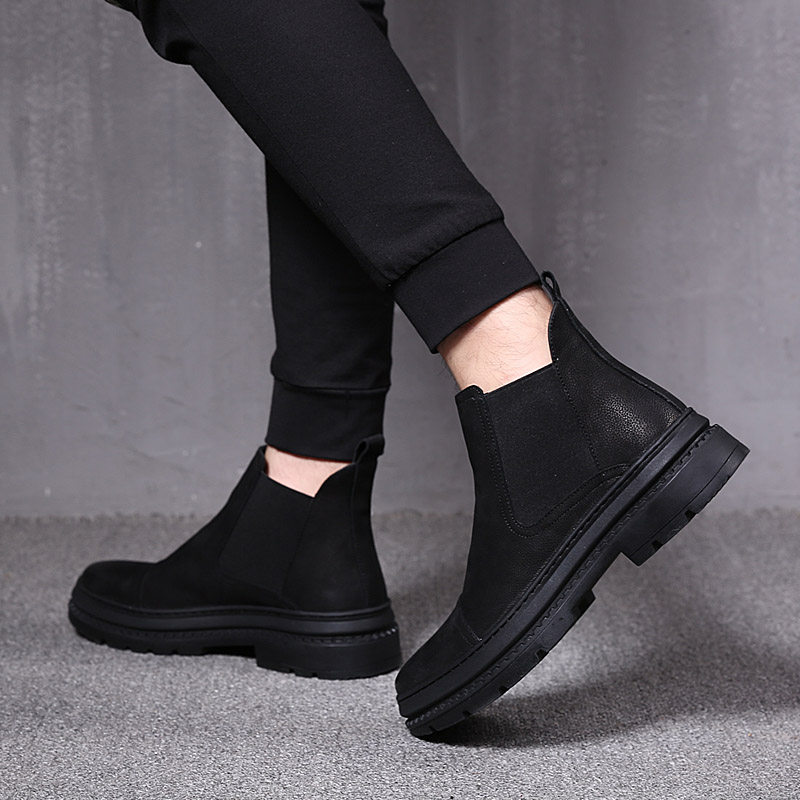 Oelephant 2022 Fall New Martin Boots Boots High Silo Leather Shoes Men's Midcylinder Chelsea Leather Boots Short Boots Winter Leather Boots