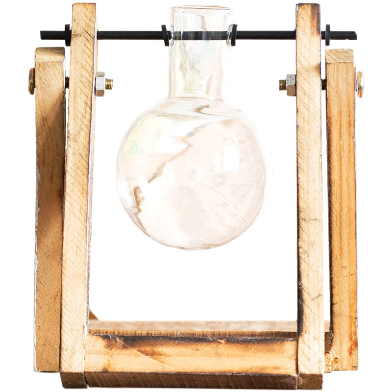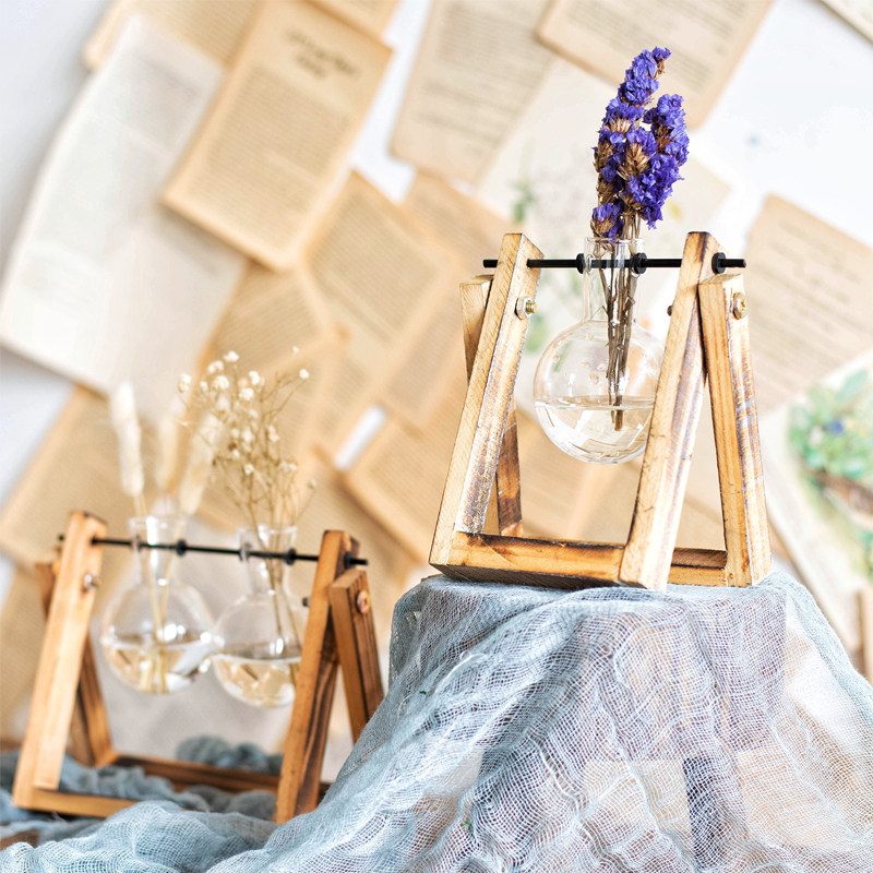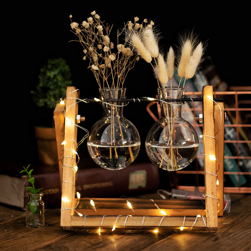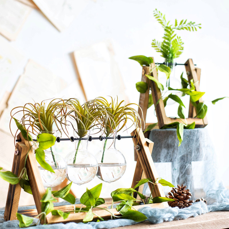 JK Mu space creative glass wooden frame bulb personality hydroponic flower arrangement vase coffee shop desk desktop decoration